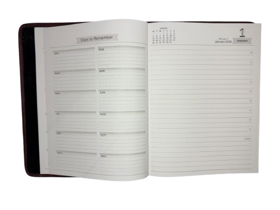 practicality and convenience in mind, this diary offers one page per day, giving you ample space to